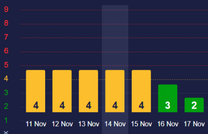 До кінця цього тижня на Землі зберігатиметься середня геомагнітна активність, що характеризується бурею рівня 4 бали за п’ятибальною шкалою. За прогнозами, ця буря залишатиметься стабільною до завершення робочого тижня, а ось на вихідних, 16-17 листопада, магнітне поле Землі стабілізується, і коливань не очікується.